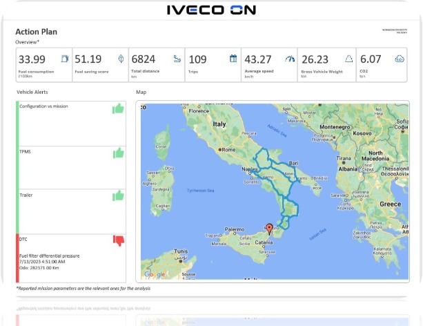 Mając dostęp do portalu IVECO ON, masz również dostęp do cyklicznych raportów podsumowujących stan Twojej floty. Raporty SMART oraz Raporty Bezpiecznej Jazdy mogą być wysyłane na Twoją skrzynkę mailową. Pierwszy z nich zawiera dane dotyczące parametrów zużycia paliwa i zachowania kierowcy, które są monitorowane za pomocą algorytmu DSE. Drugi zawiera dane zebrane z systemów bezpieczeństwa pojazdu, które pomogą sprawdzić, w jaki sposób pojazd może być bardziej bezpieczny na drodze.